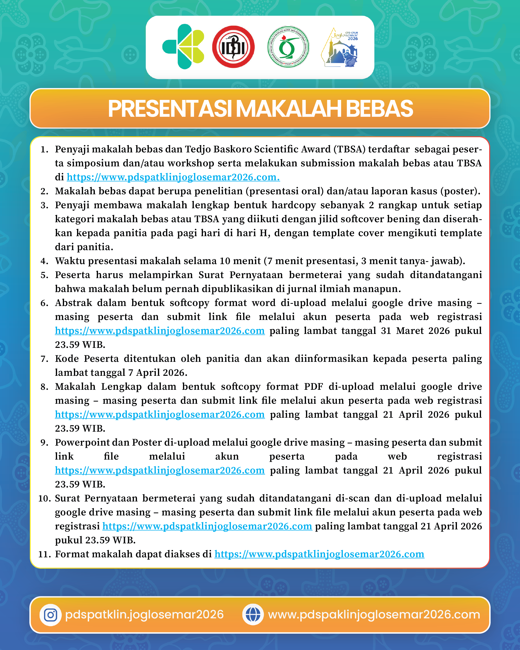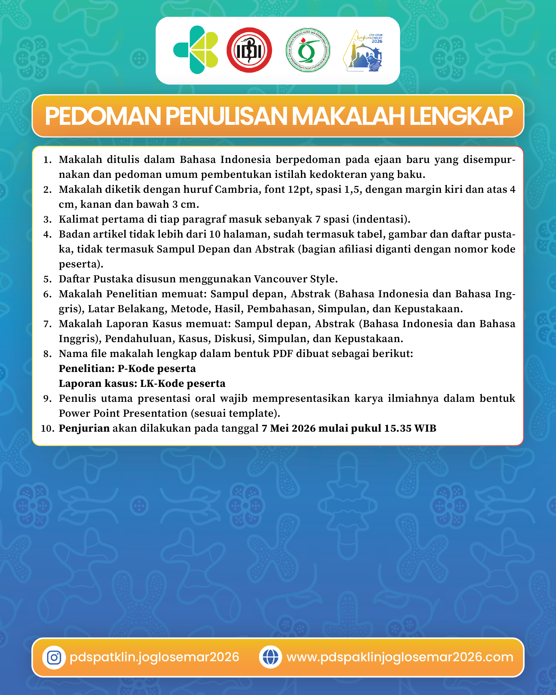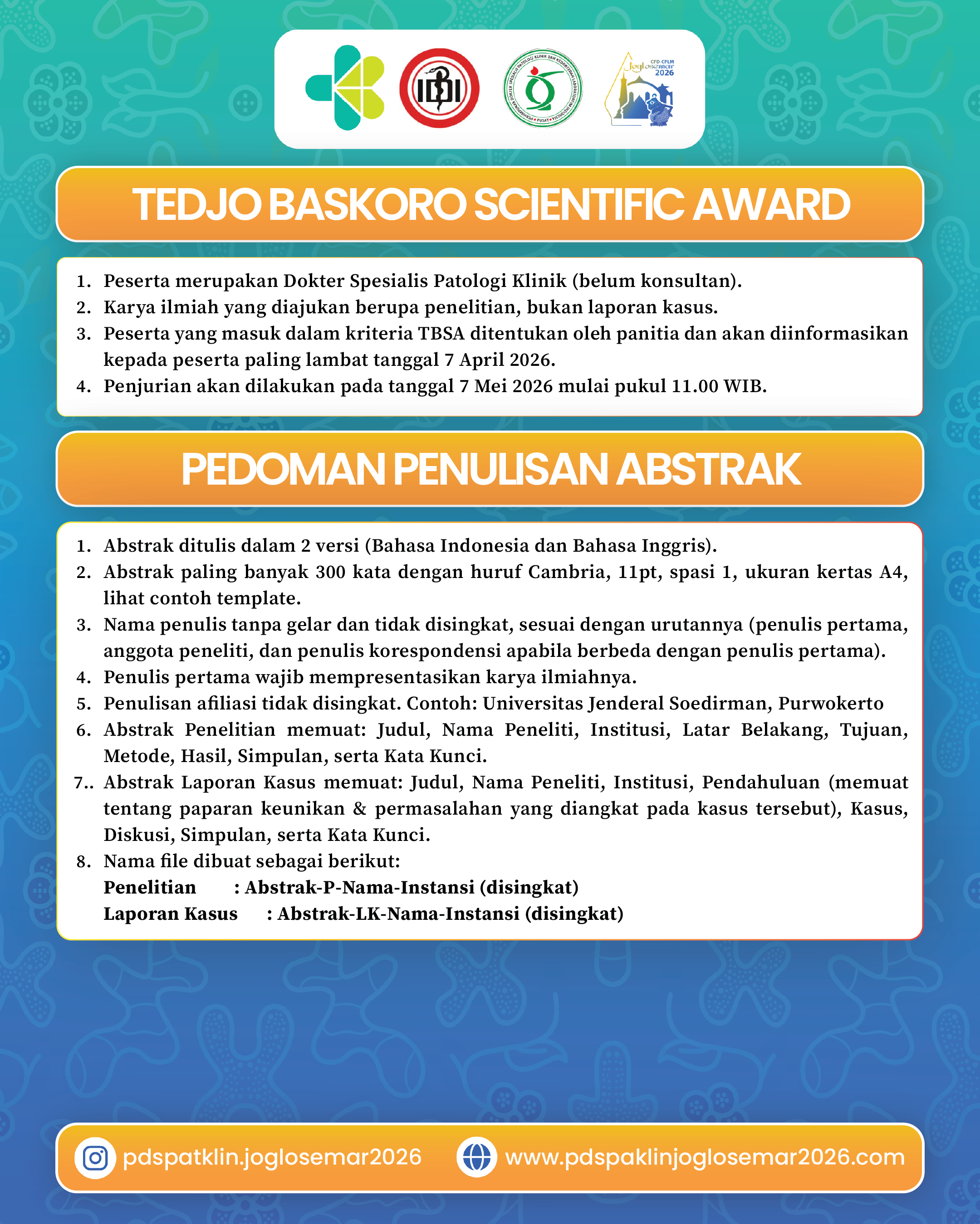Pedoman Makalah Poster, Presentasi Oral, dan Tedjo Baskoro Scientific Award CPD – CPLM JOGLOSEMAR 2026